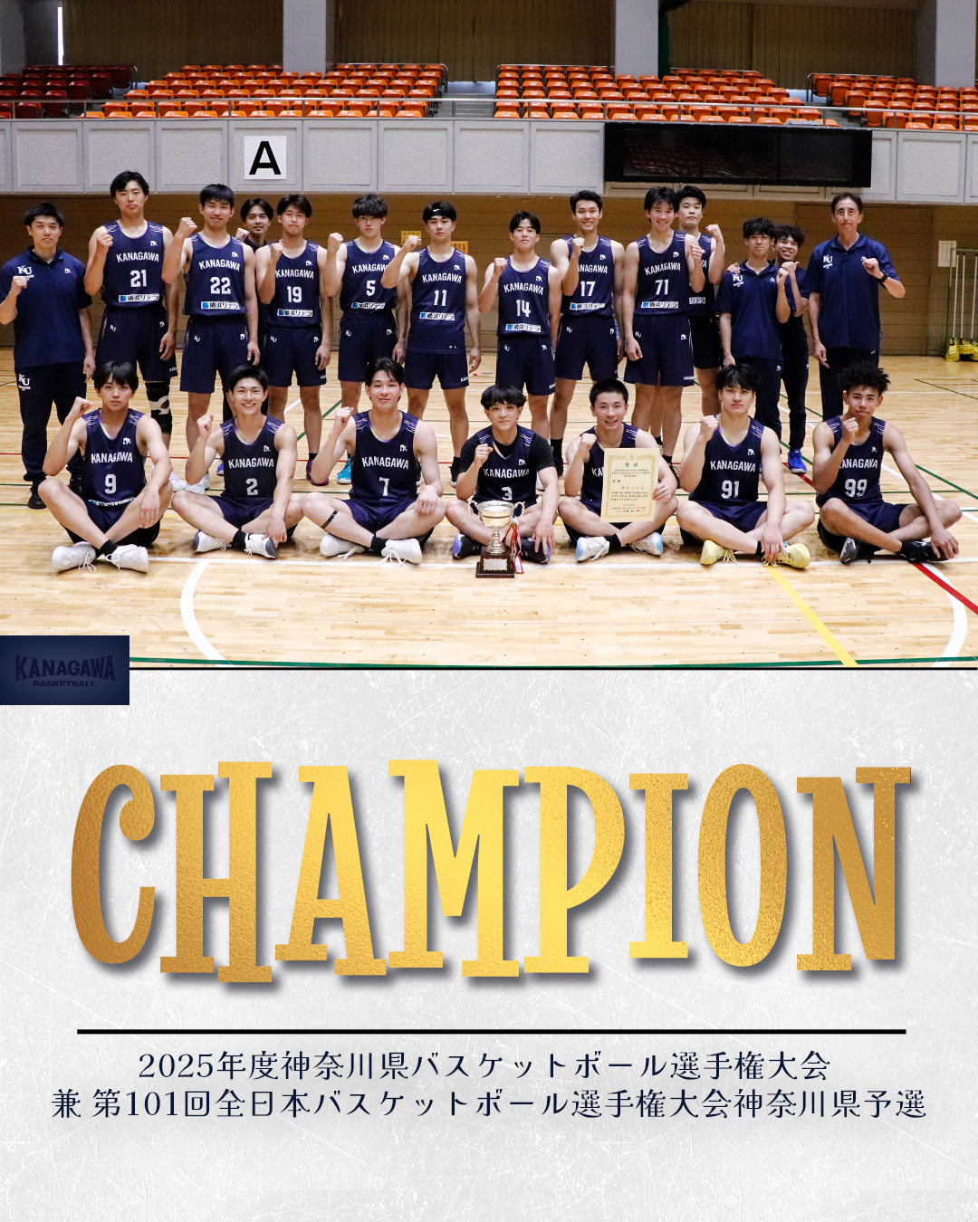 以上の結果をもちまして、神奈川大学男子バスケットボール部はALL JAPAN予選を優勝という結果で終了いたしました。